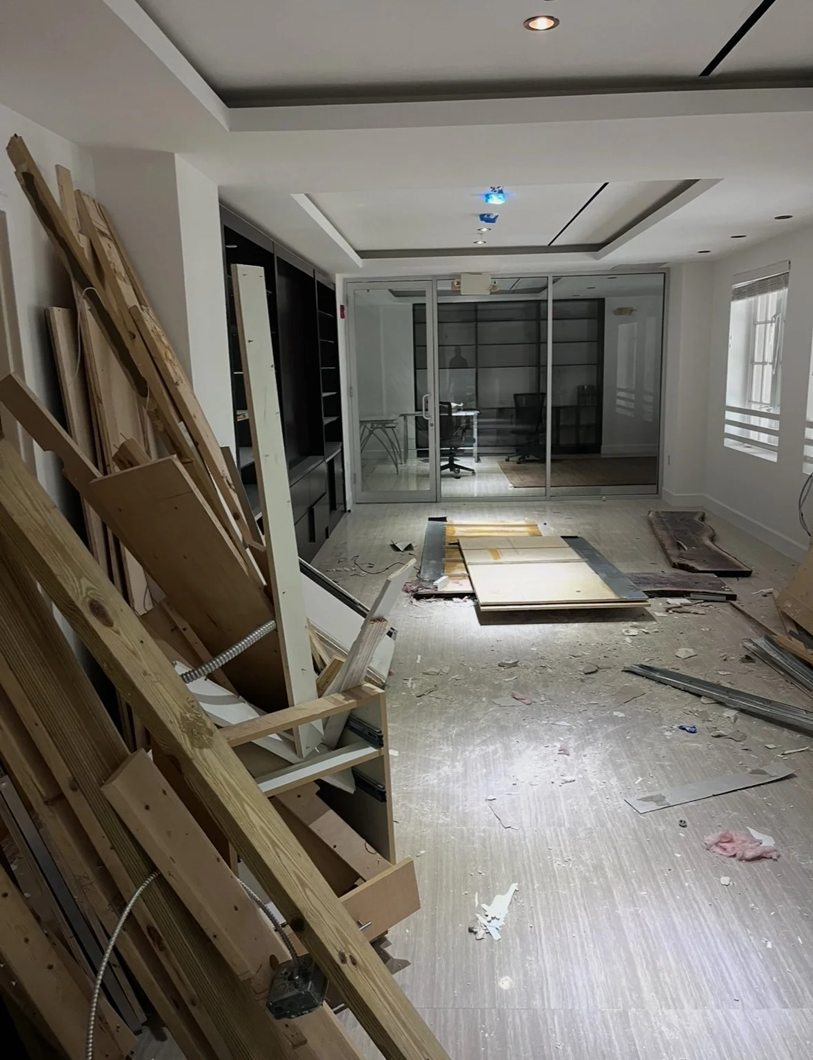 Tile, flooring, and carpet debris